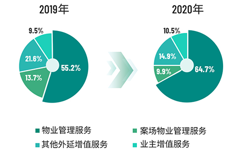 規(guī)模擴(kuò)張、多元發(fā)展是當(dāng)下物企破圈前行的核心競(jìng)爭力。2020年,雅生活集團(tuán)通過獲取股東優(yōu)質(zhì)項(xiàng)目、第三方市場(chǎng)拓展等內(nèi)生增長模式,協(xié)同資本驅(qū)動(dòng)外延增長,助力集團(tuán)規(guī)模強(qiáng)勢(shì)增長,業(yè)態(tài)布局均衡,進(jìn)一步深化了全業(yè)態(tài)、全產(chǎn)業(yè)鏈布局。按在管面積劃分,住宅40.4%,公建46.5%,商業(yè)及綜合體13.1%。按收入劃分,住宅43.1%,非住宅56.9%。在合約面積中,第三方項(xiàng)目占比提升至74.1%。