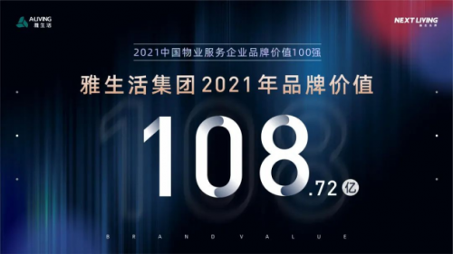雅生活集團(tuán)作為中國(guó)物業(yè)管理行業(yè)百強(qiáng)TOP4,榮獲“2021中國(guó)物業(yè)服務(wù)企業(yè)品牌價(jià)值100強(qiáng)”,憑借優(yōu)異穩(wěn)定的市場(chǎng)表現(xiàn),實(shí)施“智慧城市服務(wù)商戰(zhàn)略”使雅生活品牌影響力與發(fā)展?jié)摿ψ咴谛袠I(yè)前沿,品牌價(jià)值再創(chuàng)新高達(dá)到108.72億,品牌實(shí)力更上新臺(tái)階。