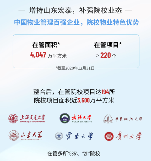 截至2021年6月30日,雅生活集團在管面積及合約面積分別為4.2億平方米及5.8億平方米。含期后收購山東宏泰,雅生活的在管面積及合約面積規(guī)模分別超過4.6億平方米及6.2億平方米。