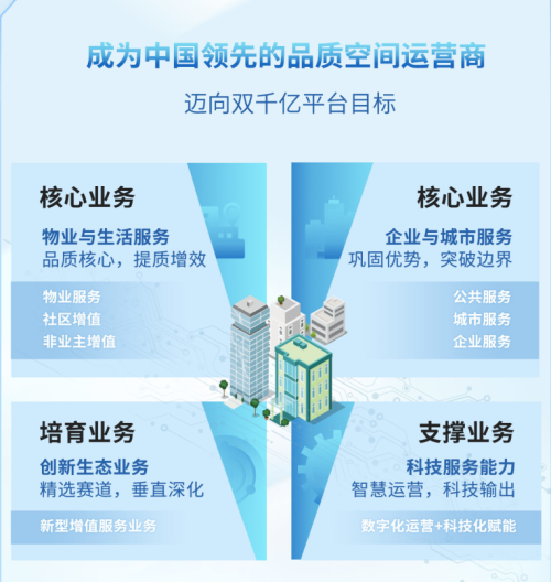 未來,集團將重點關(guān)注家政、幼托、養(yǎng)老等國家政策鼓勵、有龐大潛在需求的“物業(yè)服務+生活服務”產(chǎn)業(yè),以專業(yè)化產(chǎn)品運營思維,重點輸出服務價值,打造創(chuàng)新增值服務的專業(yè)服務能力。同時,集團將在商企服務需求端深挖業(yè)務潛力,瞄準團膳、通勤、個性化企業(yè)服務等高關(guān)聯(lián)性增值服務領(lǐng)域,不斷延伸及突破服務邊界,盡早補強業(yè)務專業(yè)能力。